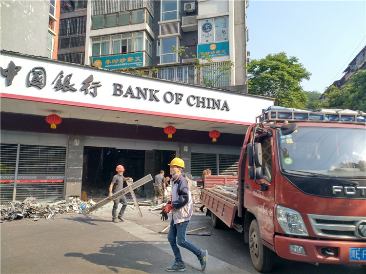 啊瀘州藍(lán)田,中國(guó)銀行,拆除空氣總共我們用了三天時(shí)間。嗯今天就再發(fā)一下第二天的一些相關(guān)才出的視頻,第三天的就不錄取發(fā)出了因?yàn)檎掌技已b在拆除施工有一些。