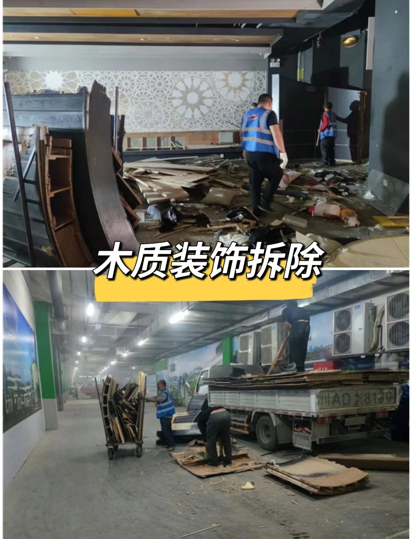 餐廳是泰式風(fēng)格,所以木質(zhì)裝飾很多,第一天我們主要是對(duì)各個(gè)木質(zhì)進(jìn)行拆除清場(chǎng)。